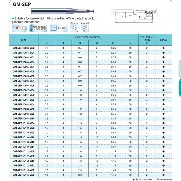 These high-performance milling tools come with a variety of cutting edge geometries, including 4-flute and 6-flute designs, optimized for chip removal and efficient cutting. The tools are specifically suited for operations involving materials such as aluminum, stainless steel, and titanium alloy. Their robustness and cutting precision make them the go-to choice for industries such as aerospace, automotive, and mold manufacturing.