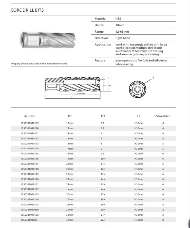 The Core Drill Bit, also known as Annular Cutter, is specifically designed for precise hole cutting in steel, aluminum, and other metals. Made from high-speed steel (HSS), these core drill bits offer excellent cutting performance, superior durability, and a long service life, even in tough materials. The Annular Cutter is the ideal tool for applications that require a high degree of precision and minimal material wastage.