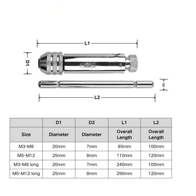 Size Compatibility: Adjustable to fit various tap sizes such as M3-M8, M5-M12, and others